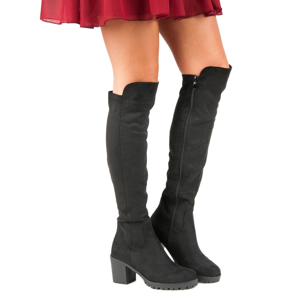 Boty jsou vybaveny vyztuženou patou a pevnou podrážkou s nášlapem, která zajišťuje stabilitu a komfort nošení. Vnitřek bot je vyplněn textilní vložkou, která zajišťuje pohodlí našich nohou. Kulatá špička a svršek ke kolenům dodávají eleganci a třídu každému outfitu.