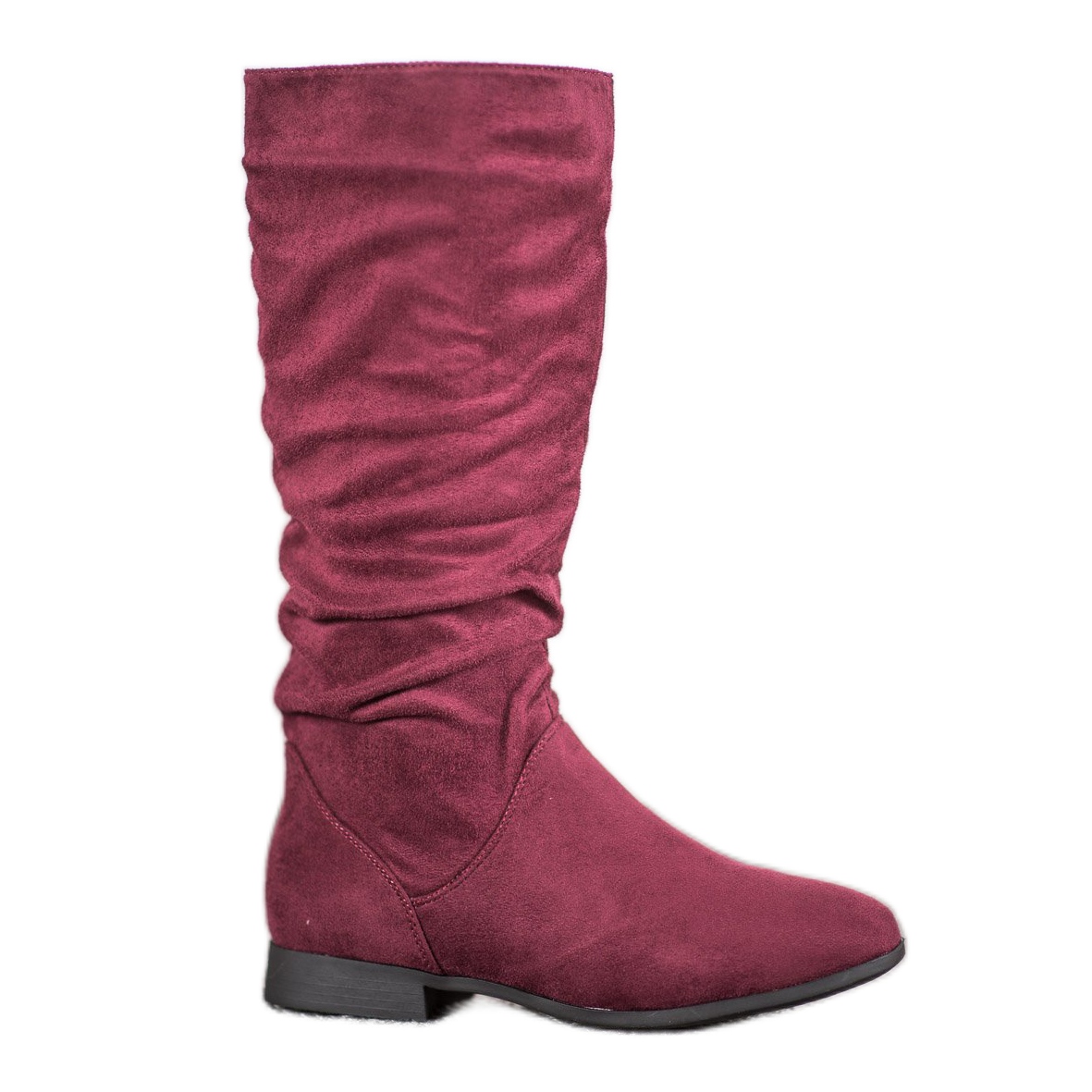 SHELOVET SHELOVET Semišové boty nad kolena červené
