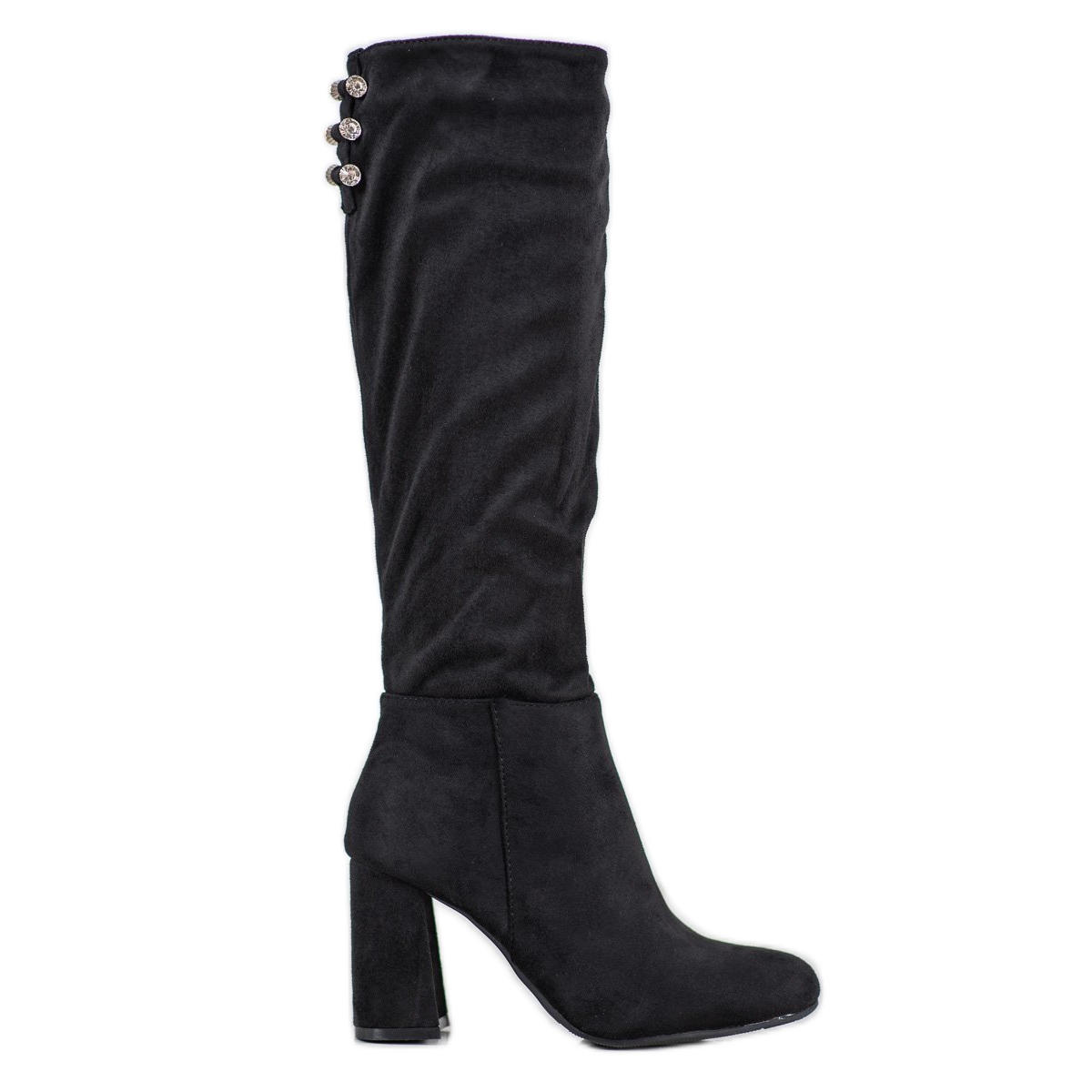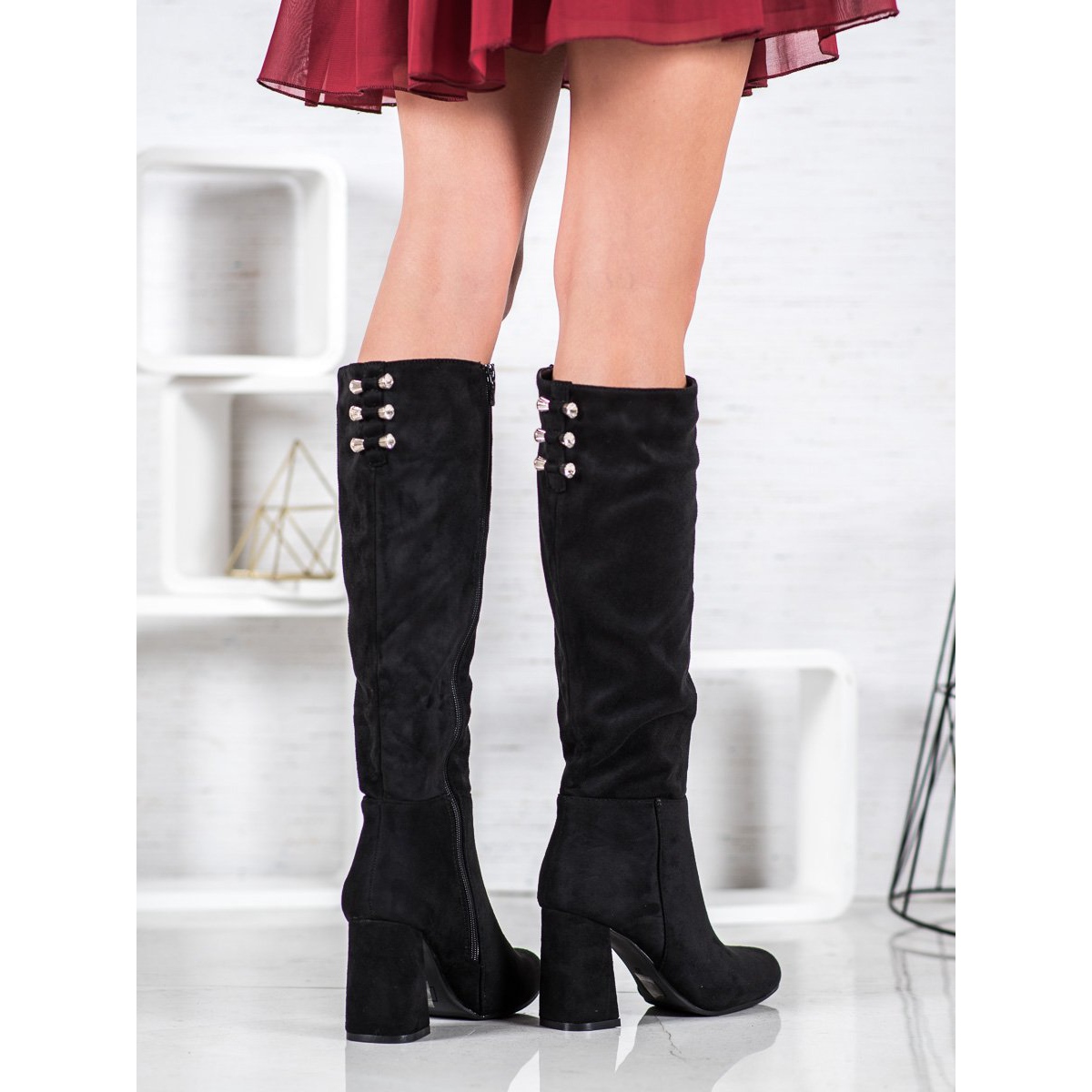 SHELOVET Semišové boty s kubickým zirkonem černý