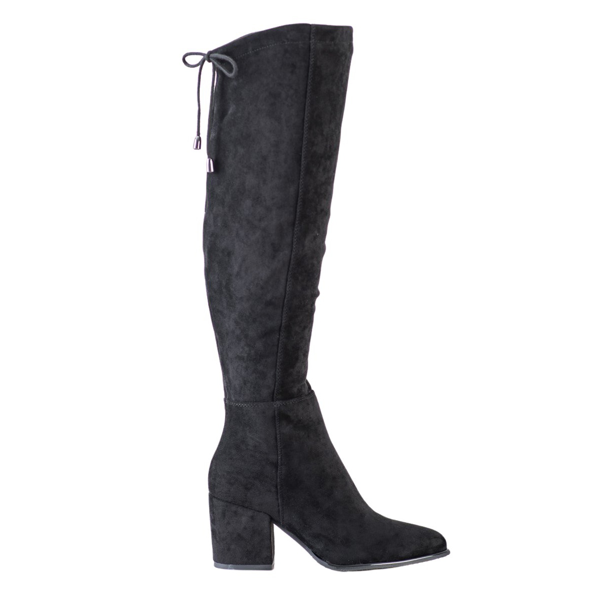 Vestavěný měkký podpatek a zateplení zajišťují komfort nošení i v chladnějších dnech. Kulatá špička a výška nad kolena dodávají eleganci a šik a díky výraznému blokovému podpatku 7,5 cm se budete cítit sebejistě na každém kroku.