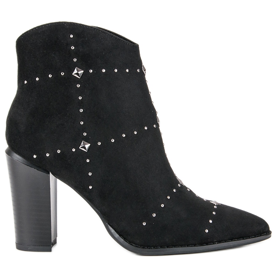 Díky vysokému podpatku v podobě 9,5 cm sloupku zdůrazní postavu a dodají každému stylingu elegantní vzhled. Špičatá špička a originální ozdoby s kamínky a cvočky dodávají trochu feističnosti, díky čemuž jsou tyto boty jedinečné. Zip navíc usnadňuje nazouvání a vyzouvání a zabudovaná pata zajišťuje stabilitu při nošení.