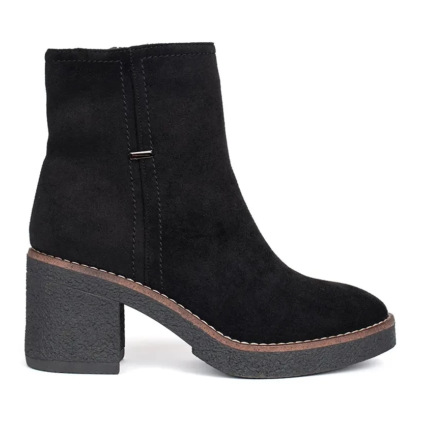Díky vybudovanému upevňování a oteplování jsou tyto boty ideální pro chladnější dny a poskytují teplo a pohodlí. Kulatý nos a výška horního dosahujícího kotníku jim dávají třídu a všestrannost. 7 cm vysoká pata používaná ve formě příspěvku zajišťuje stabilitu a pohodlí při chůzi, což z nich dělá ideální volbu denně.