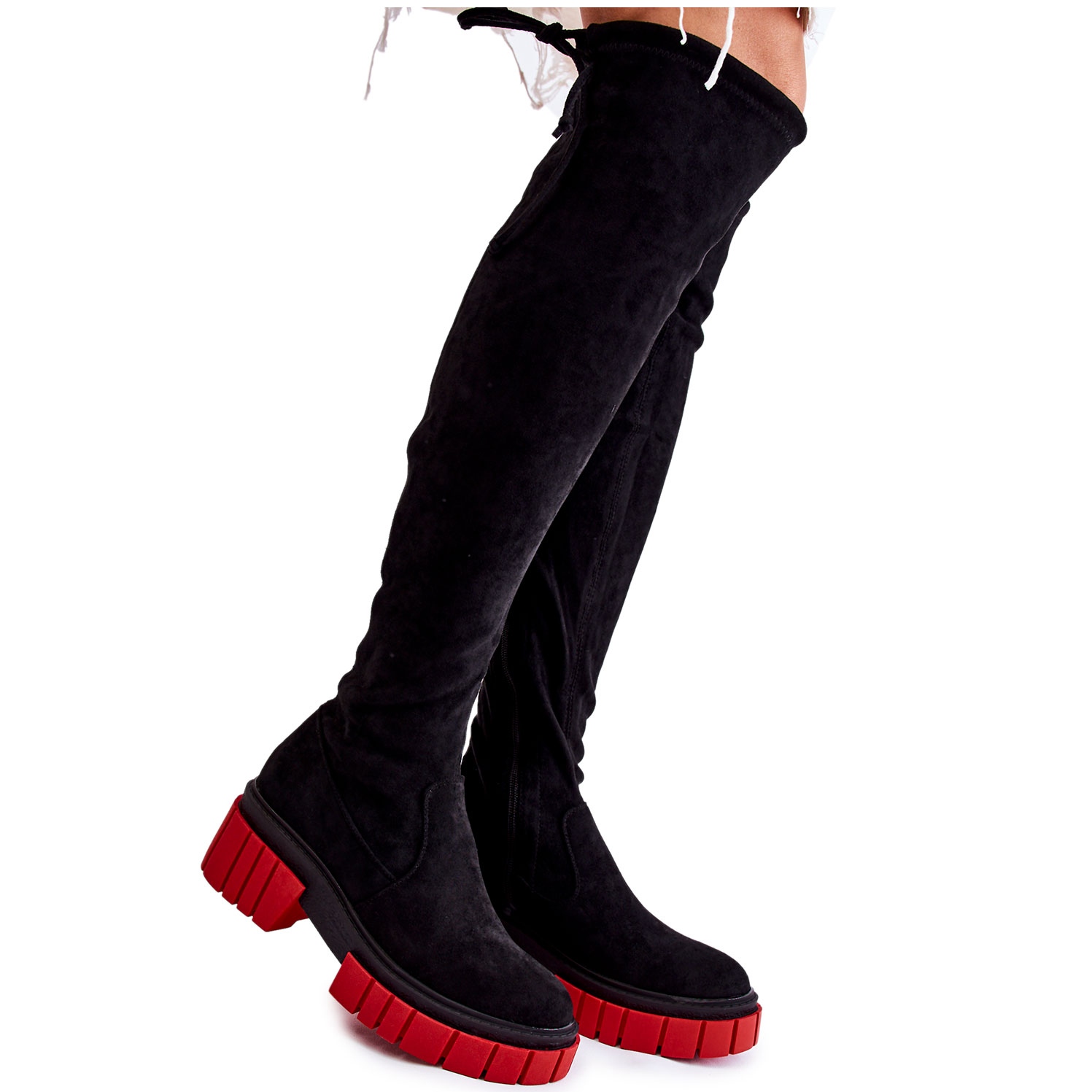 Dámské semišové boty Cheera Workers-Black a Red, za kolenem
