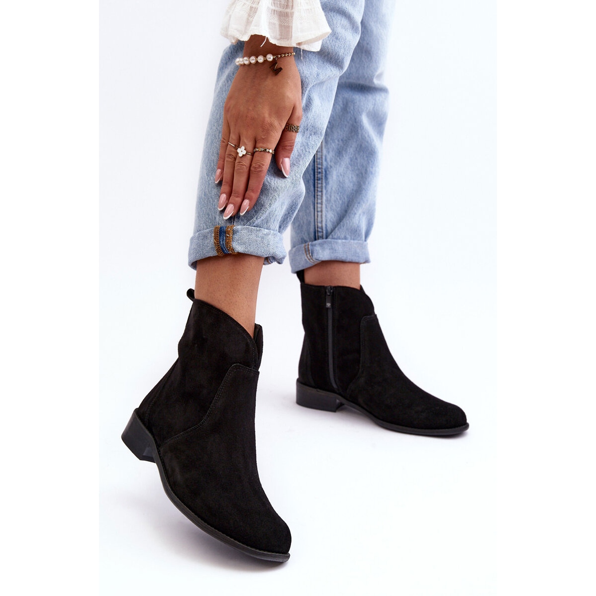 Klasické, elegantní boty vyrobené z přírodní semišové kůže - ideální pro sezónu podzimní/zimní. Kotník -natáhněte kotníkem až k kotníku, připevněný praktickým zipem na boku. Vložení přírodní kůže poskytuje pohodlí během každodenního nošení a ztužená pata stabilizuje nohu. Nadčasová, černá barva a zaoblený nos způsobují, že model dokonale odpovídá mnoha stylům.