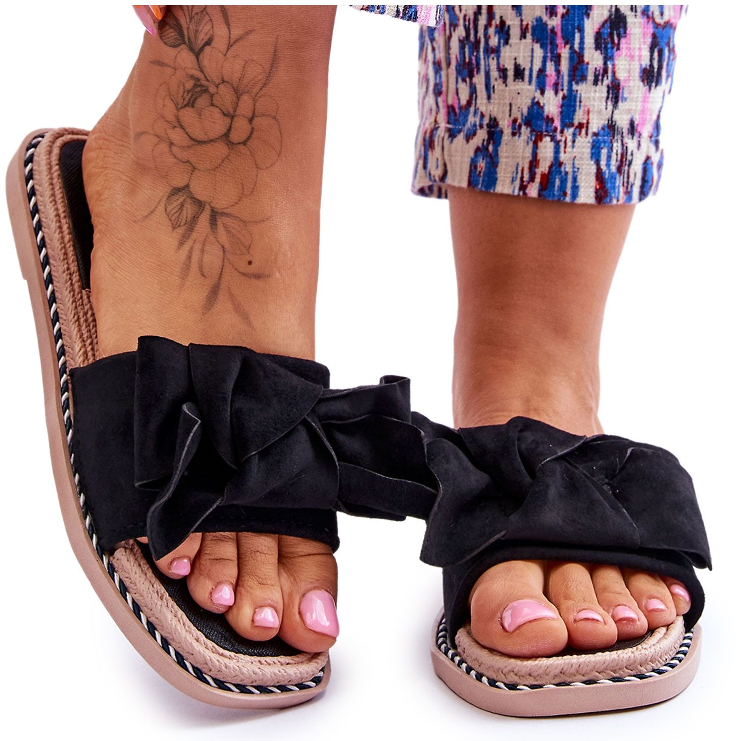 Inna marka Semišové dámské pantofle s mašlí Černá jantarová