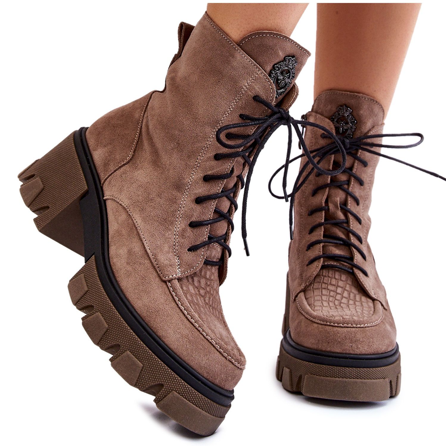 PL5 PL5 Semišové dámské zateplené boty Trapper Light Brown Rehin béžový hnědý