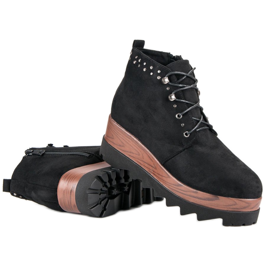 Kotníkové boty jsou mimořádně univerzální – skvěle se hodí jak na každodenní procházky, tak na speciální akce, jako jsou koncerty nebo setkání s přáteli. Zapínání na tkaničky a zip umožňuje snadné a pohodlné obouvání a vyzouvání. Kulatá špička dodává jemnost a kamínky zavádějí trochu rockového stylu.