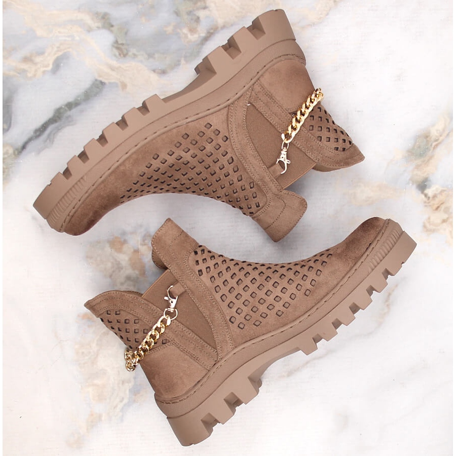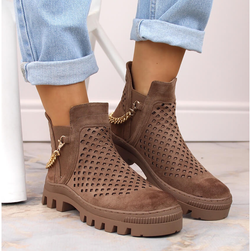 Elegantní ženské boty Potocki v hnědé, vyrobené z vysoce kvalitní ekologické kůže se semišovým povrchem. Model ve WOL179B je univerzální návrh - je skvělý v příležitostných a městských stylizacích pro chladnější dny.