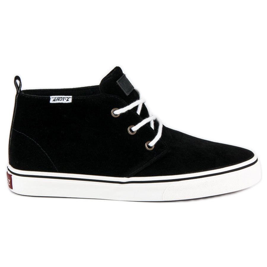 Tenisky Andy Z jsou univerzální - skvěle se hodí jak na jaro a léto, tak i během chladnějších dnů podzimu a zimy. Černé semišové boty s krátkým bílým šněrováním jsou perfektním doplňkem k ležérním stylům a logo ANDY-Z na jazyku a na zadní straně podrážky zdůrazňuje jejich jedinečný styl.