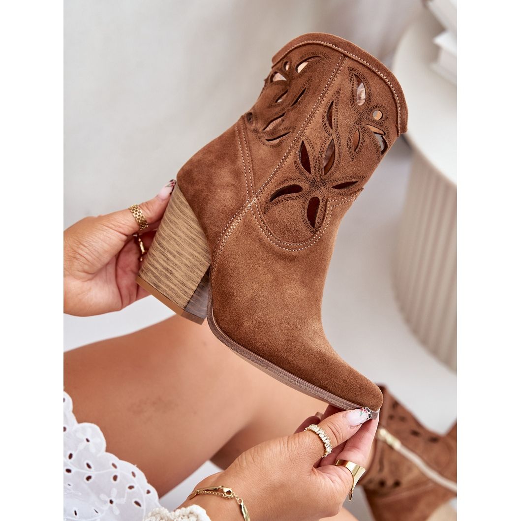 Lewski Shoes Lewski Shoes Semišové kovbojské boty s prolamovaným vzorem Lewski 3612 Brown béžový