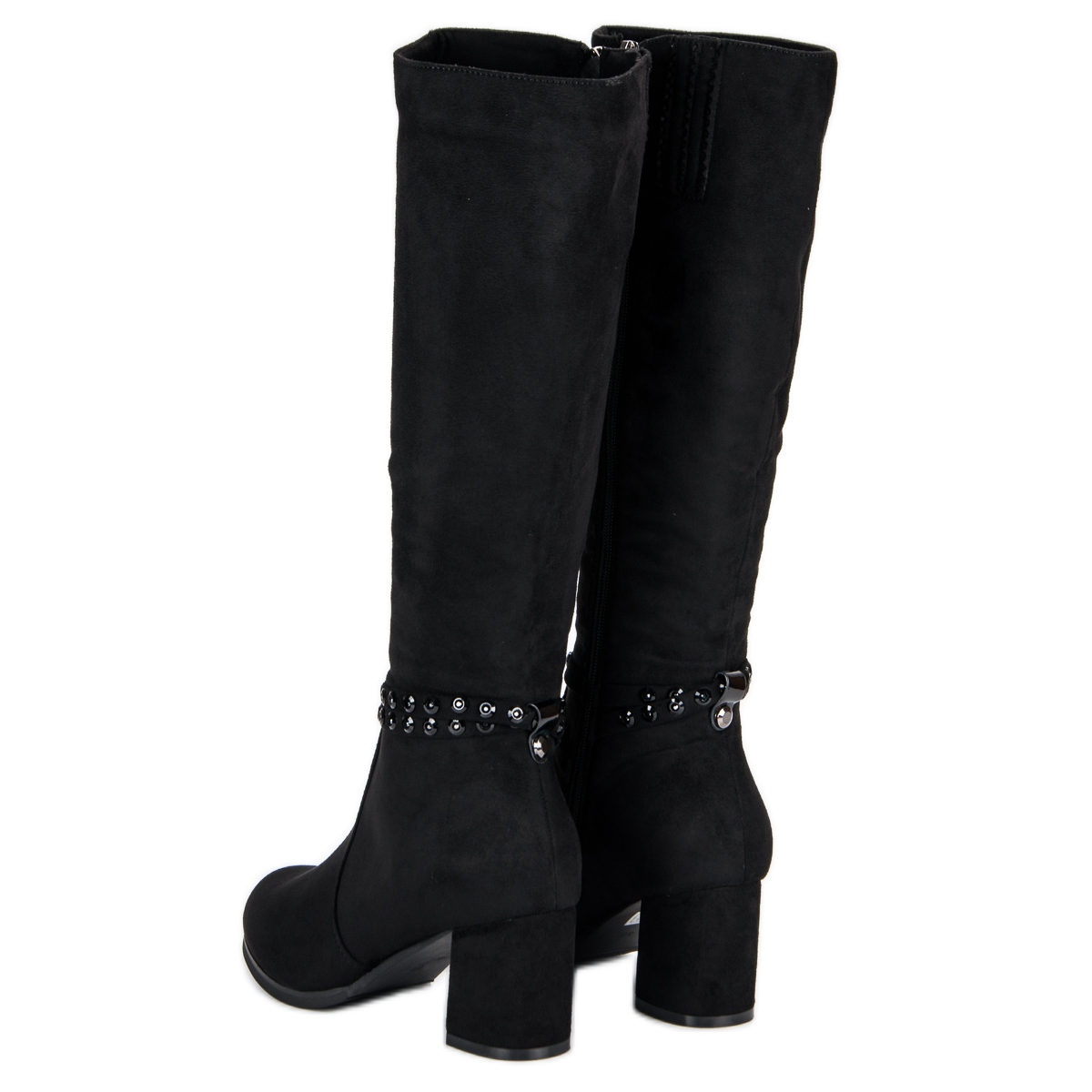 Stylové a elegantní semišové kozačky na vysokém podpatku v černé barvě jsou perfektní volbou pro každou módní ženu, která chce vyniknout v davu. Vyrobeny z ekologického semiše, spojují pohodlí a jedinečný design. Tyto kozačky nad kolena se jistě stanou nepostradatelným prvkem vašeho podzimního šatníku.