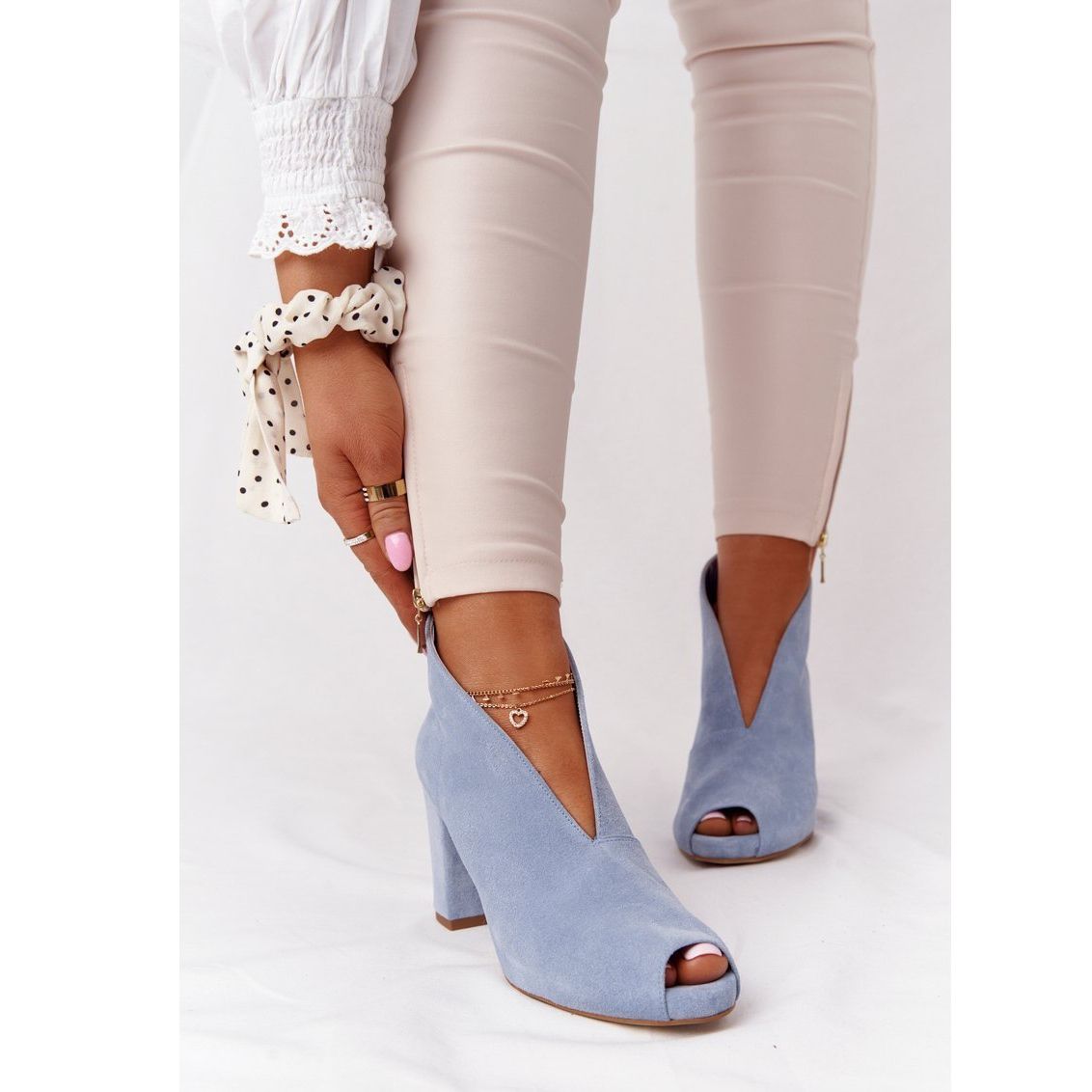 Podrobnosti: Exquisite Semišové kozačky na sloupku se střihem Vynikající 1243 modré modrý