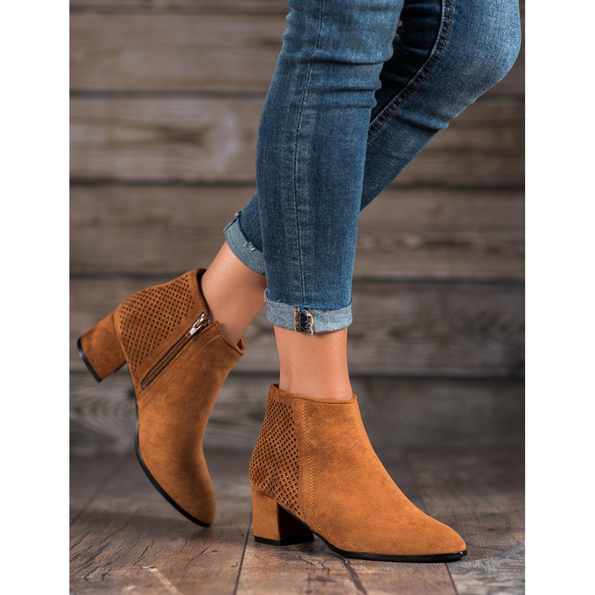 Hnědé semišové boty na vysokém podpatku Filippo jsou perfektní volbou pro moderní ženy, které oceňují styl spojený s pohodlím. Tyto kotníkové boty vyrobené z ekologické semišové kůže upoutají pozornost svým elegantním povrchem. Stabilní 5 cm vysoký blokový podpatek zaručuje pohodlí i při dlouhé chůzi, díky čemuž jsou ideální pro každodenní aktivity.