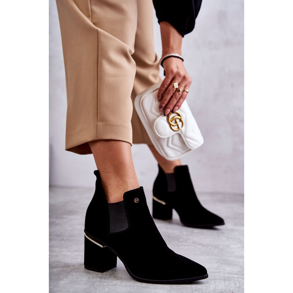 - Modelka: Semišové boty na vysokém podpatku od Laury Messi