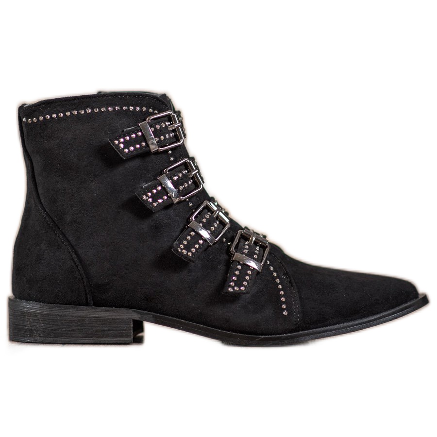 Podrobnosti: Bestelle Semišové kozačky se sponami černý