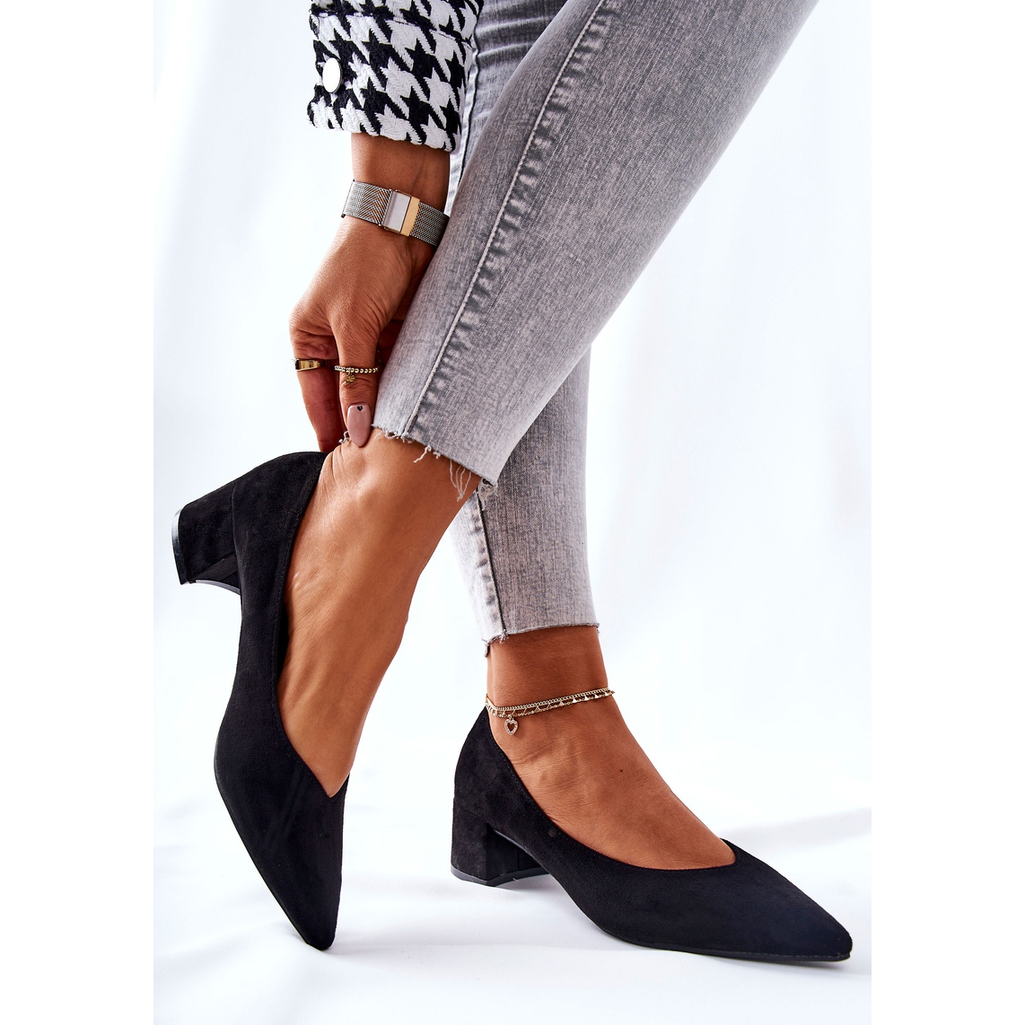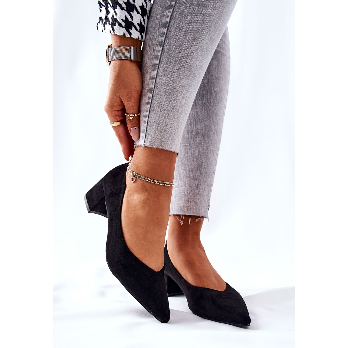 Představujeme elegantní lodičky PG1 na vysokém podpatku, které se stanou nepostradatelným prvkem vašeho šatníku. Tyto klasické boty vyrobené z vysoce kvalitní semišové ekokůže kombinují pohodlí a styl. Jejich špičaté špičky dodávají eleganci a široký podpatek zajišťuje stabilitu, takže jsou ideální jak pro každodenní nošení, tak pro zvláštní příležitosti.