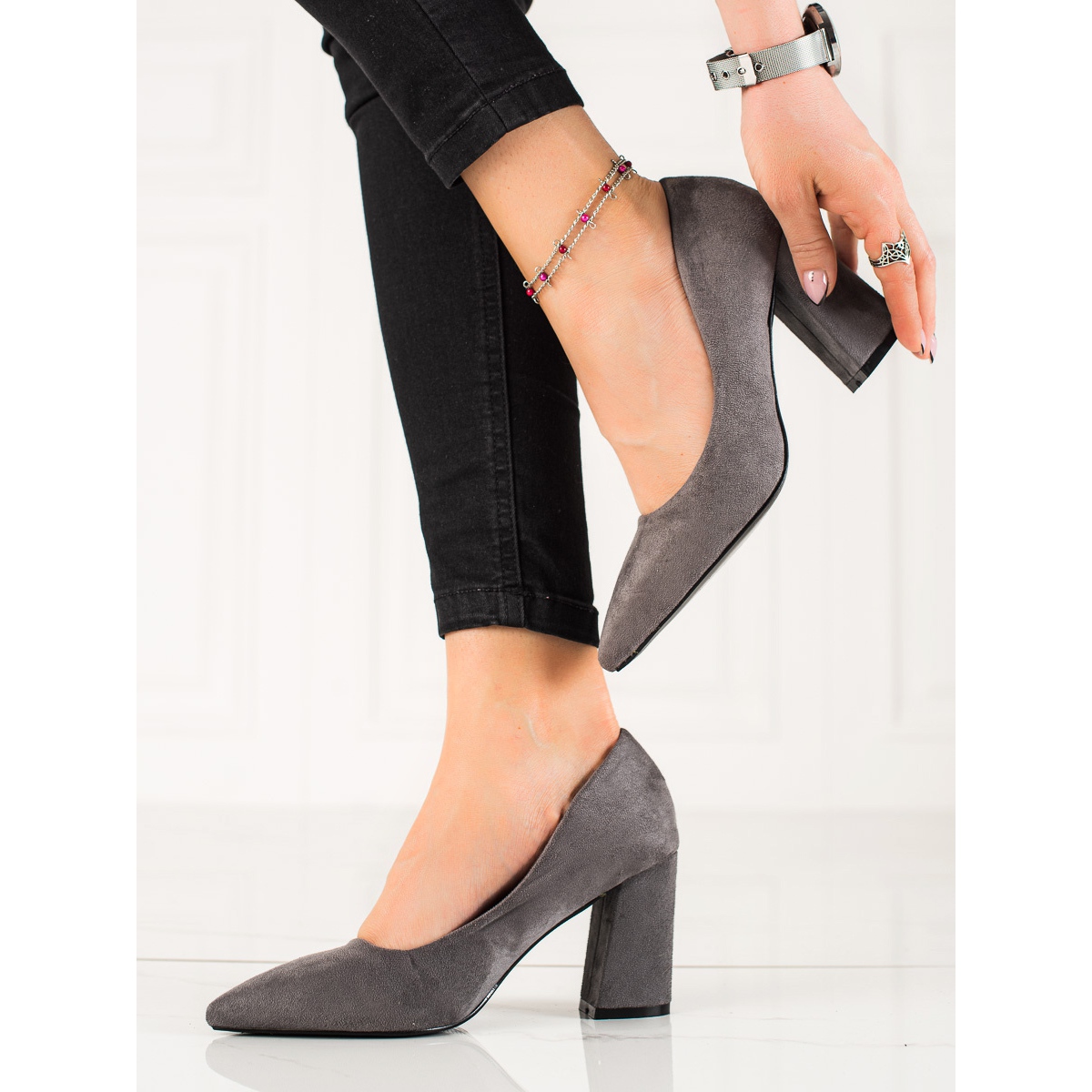 Bestelle Bestelle Semišové Lodičky Na Sloupu šedá
