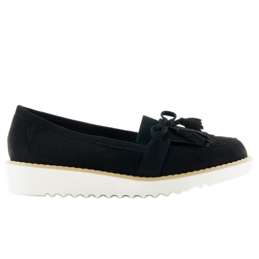 Semišové mokasíny, bílá podrážka, T236p černá černý
