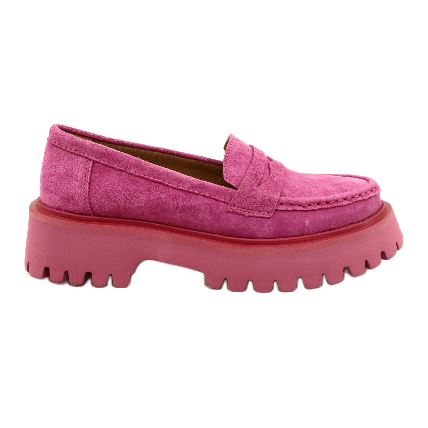 Klasické mokasíny v moderním vydání - vyrobené z vysoce kvalitních semišových přírodní kůže v intenzivní Fuchsii. Mírně vyvýšená podešví a 4,5 cm s vysokým podpatkem jemně modeluje siluetu, přidává postavu do bot a kožená vložka zajišťuje pohodlí nošení po celý den. Ideální pro ženy, které hledají eleganci s nádechem expresivity.