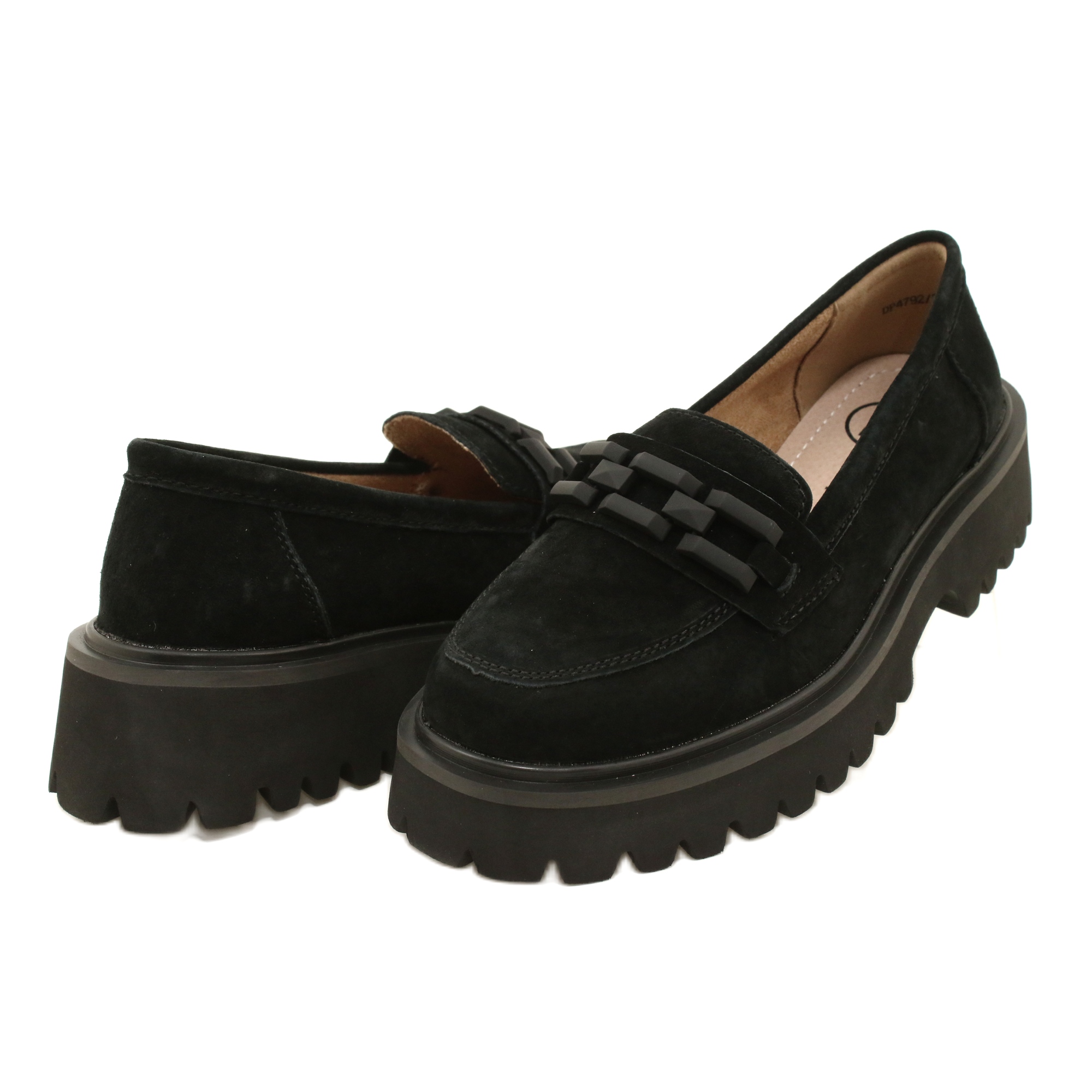 Filippo DP4792/23 BK SU SUSE MOCCASINS - Elegance v pohodlném vydání. Klasické loays vyrobené z vysoce kvalitní přírodní semišové kůže v nadčasové, tmavě černé barvě. Vyvýšená podešví a pata (4,5 cm) jemně štíhlá postava a dekorativní 3D řetězec přidává do bot a luxusní povrch. Perfektní každý den a pro další elegantní stylizace.