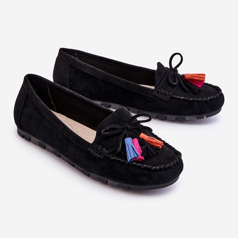 PS1 Semišové Mokasíny S Mašlí A Střapci Black Dorine černý