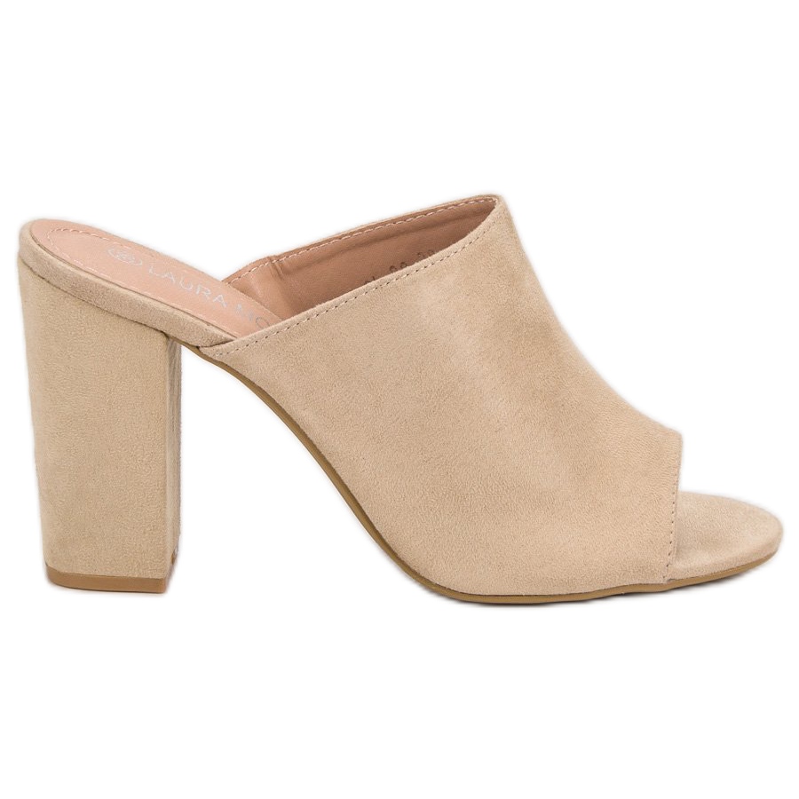 Laura Mode Laura Mode Semišové pantofle na baru hnědý