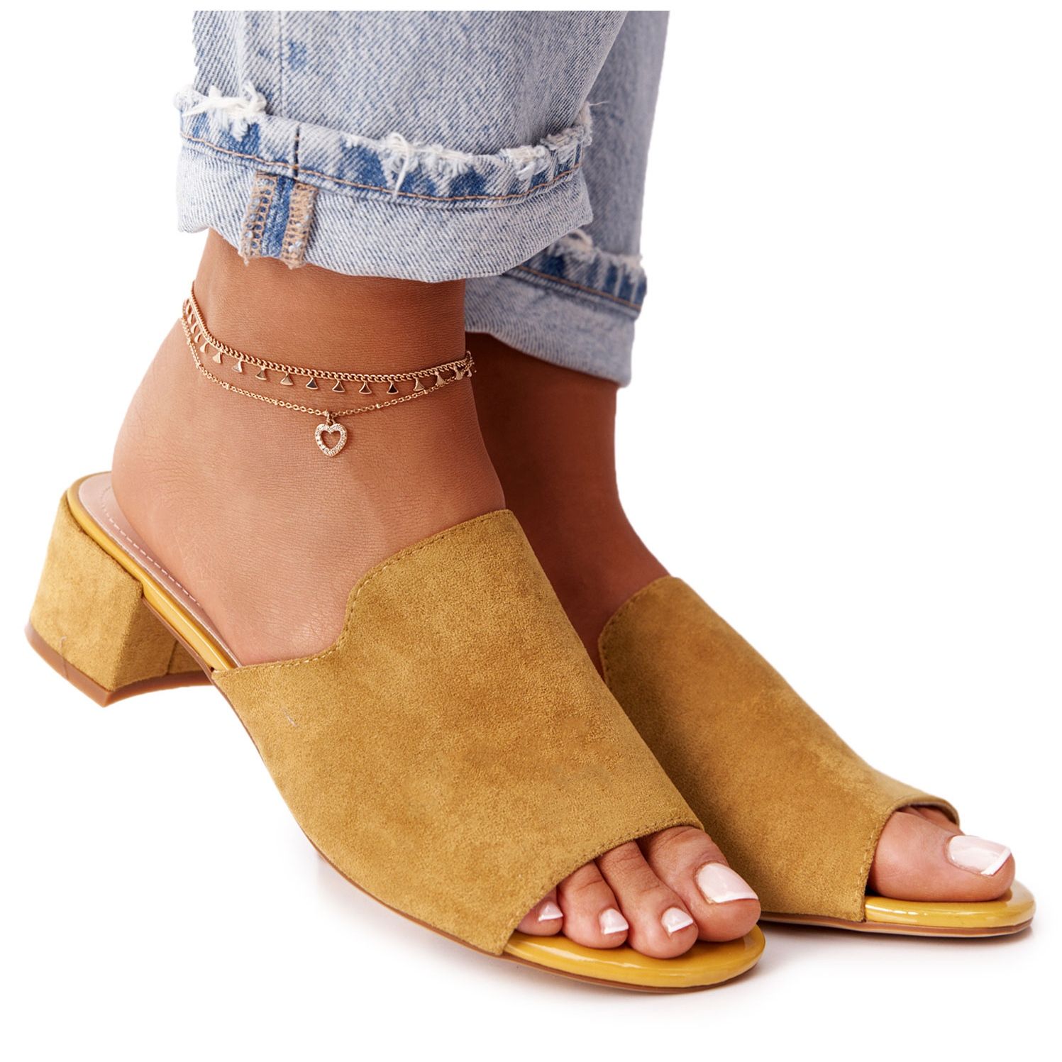 Podrobnosti: Semišové pantofle na patě Sergio Leone KL313 žlutá