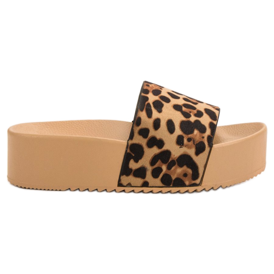 Žabky jsou vyrobeny z odolné ekologické kůže, která jim dodává módní, zvířecí leopardí potisk, který je hitem sezóny. Díky otevřené patě a nazouvacímu designu se tyto boty neuvěřitelně snadno nazouvají a zouvají. Gumová podrážka s běhounem navíc zajišťuje stabilitu, což z nich dělá skvělou volbu pro každodenní použití.