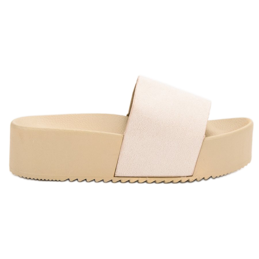 Tyto žabky, inspirované nejnovějšími trendy, byly navrženy s ohledem na pohodlí při používání. 5 cm vysoká platforma nejen dodává styl, ale také zajišťuje pohodlí při dlouhém nošení a minimalizuje zátěž pro nohy. Jsou vyrobeny z ekologické kůže, zaručují odolnost a snadné čištění.