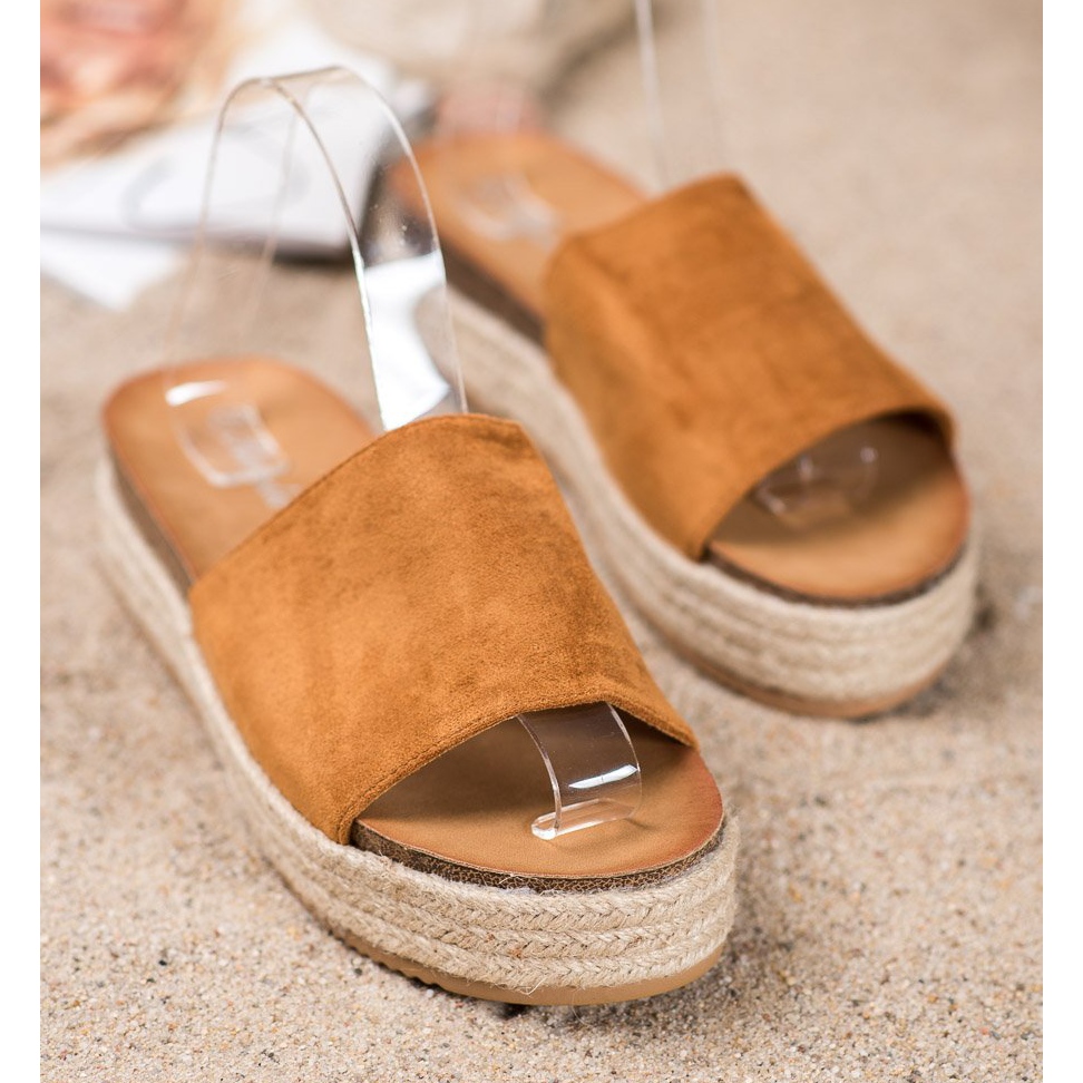 Podrobnosti: Renda Semišové pantofle na platformě hnědý
