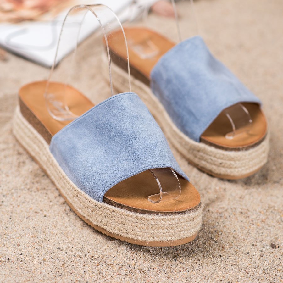 Podrobnosti: Renda Semišové pantofle na platformě modrý
