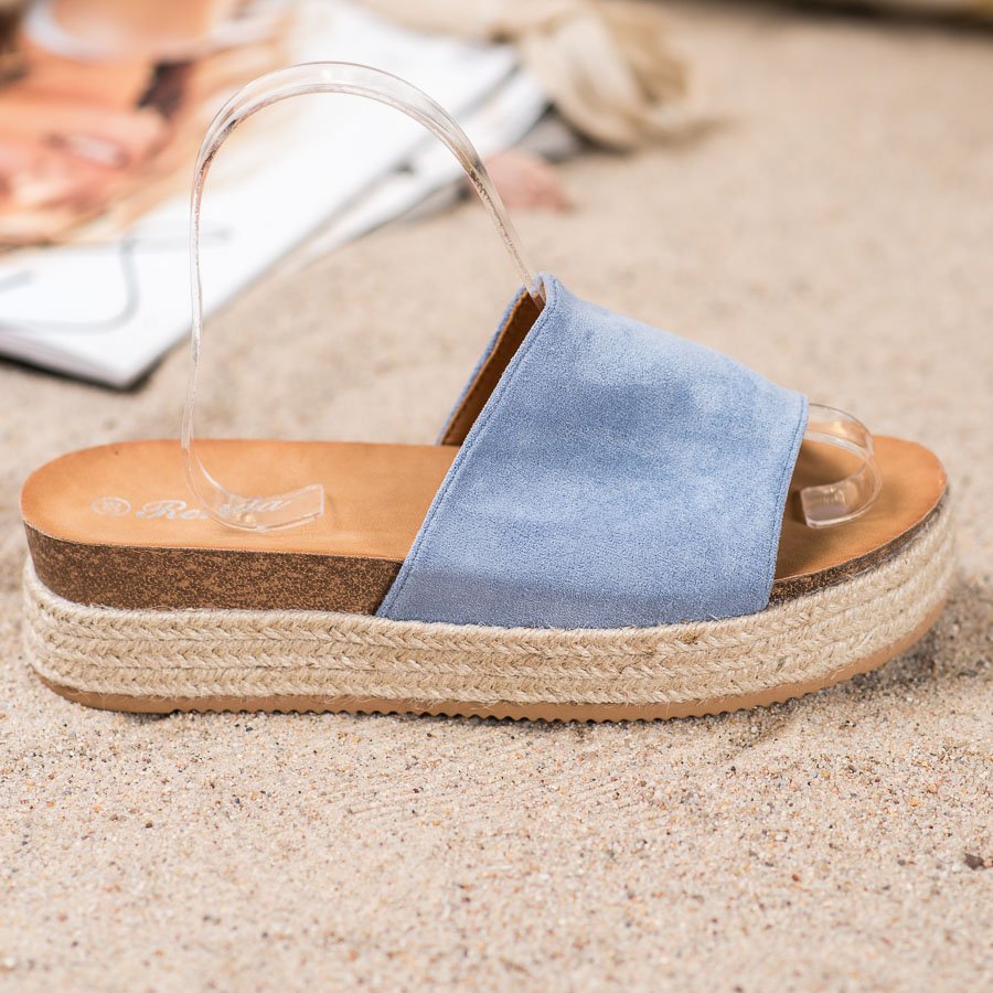 Dámské žabky Renda jsou perfektní volbou pro letní dny, kombinují eleganci a pohodlí. Tyto žabky vyrobené z vysoce kvalitní semišové eko kůže v krásné modré barvě potěší svou jednoduchostí a klasickým designem. Díky vysoké, 5centimetrové platformě se jejich nošení stává potěšením - platforma dokonale izoluje od země, což zaručuje pohodlí na různých površích.