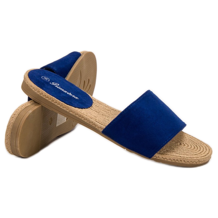 Tento model má otevřenou patu a navlékací sponu, díky čemuž jsou mimořádně praktické a pohodlné. Mají plochou podrážku o výšce 1,5 cm, díky čemuž se skvěle hodí na každodenní procházky bez zatěžování nohou. Modré žabky od Primavera lze díky lehké konstrukci nosit mnoho hodin bez nepohodlí.