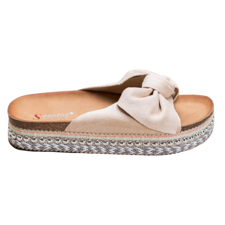 **Semišové žabky Seastar s ozdobnou platformou hnědé**