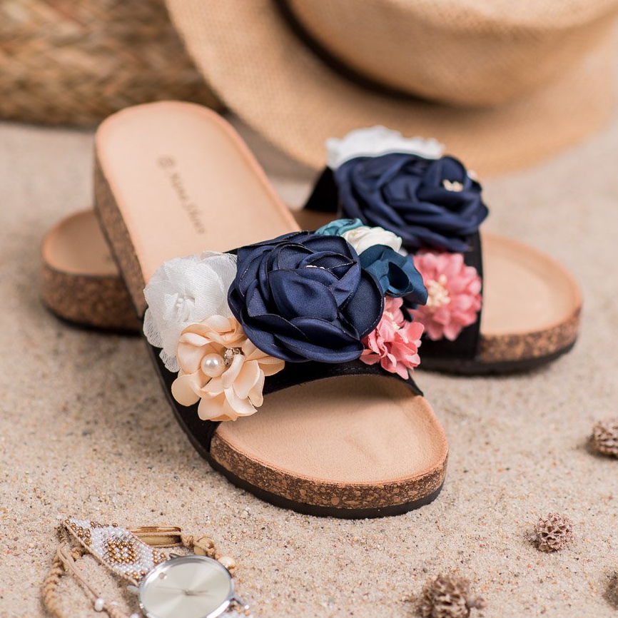 SHELOVET SHELOVET Semišové pantofle s květinami černá