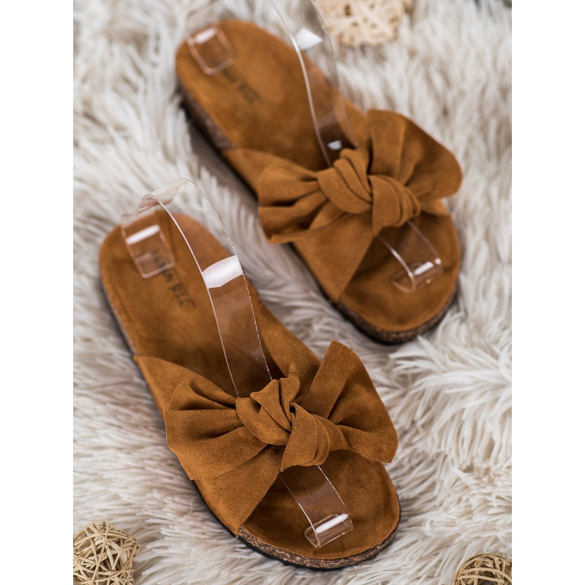 SHELOVET SHELOVET Semišové pantofle s mašlí hnědý