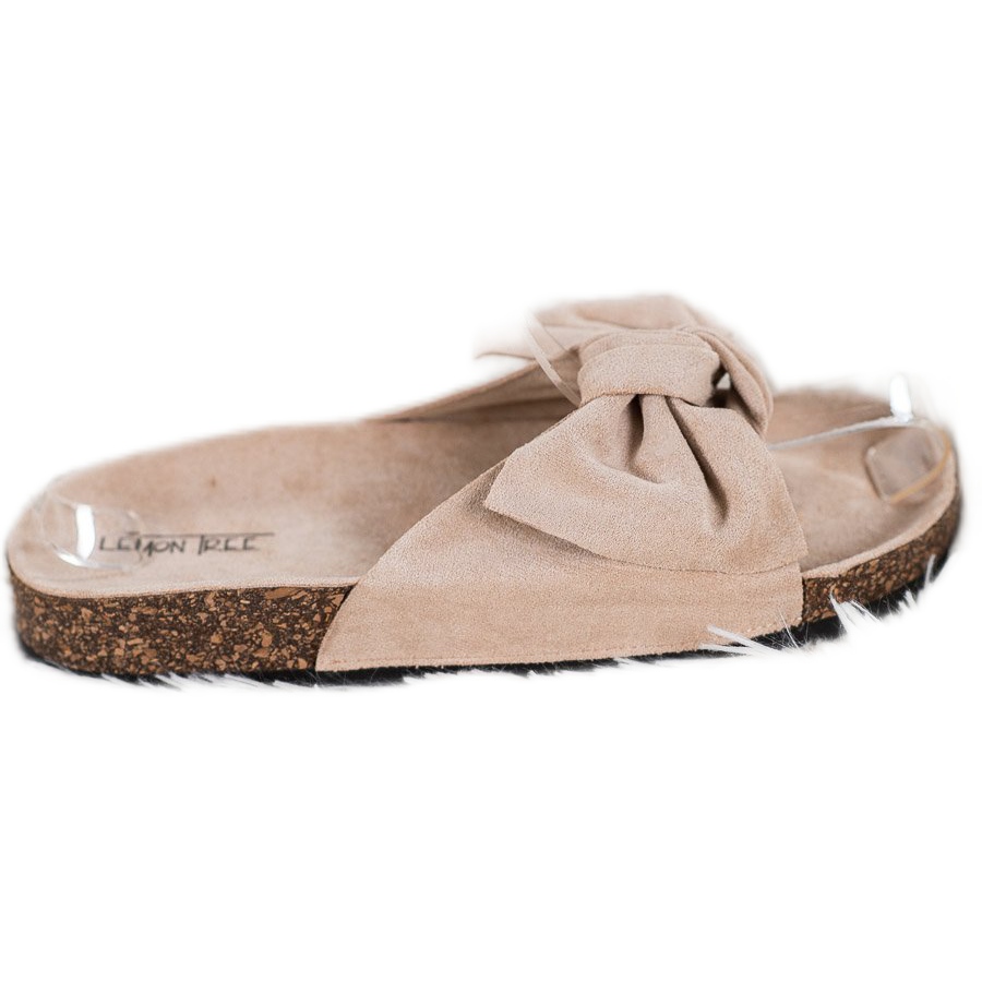 SHELOVET SHELOVET Semišové pantofle s mašlí hnědý