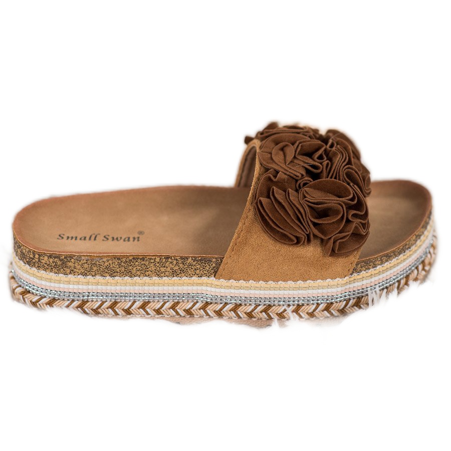 Podrobnosti: Small Swan Semišové pantofle s ozdobami hnědý