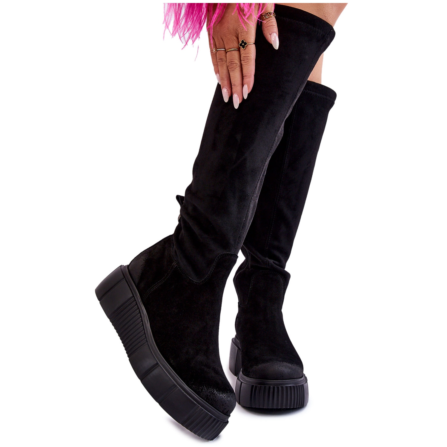 PL5 Semišové podkolenky na platformě Black Spectrum černý
