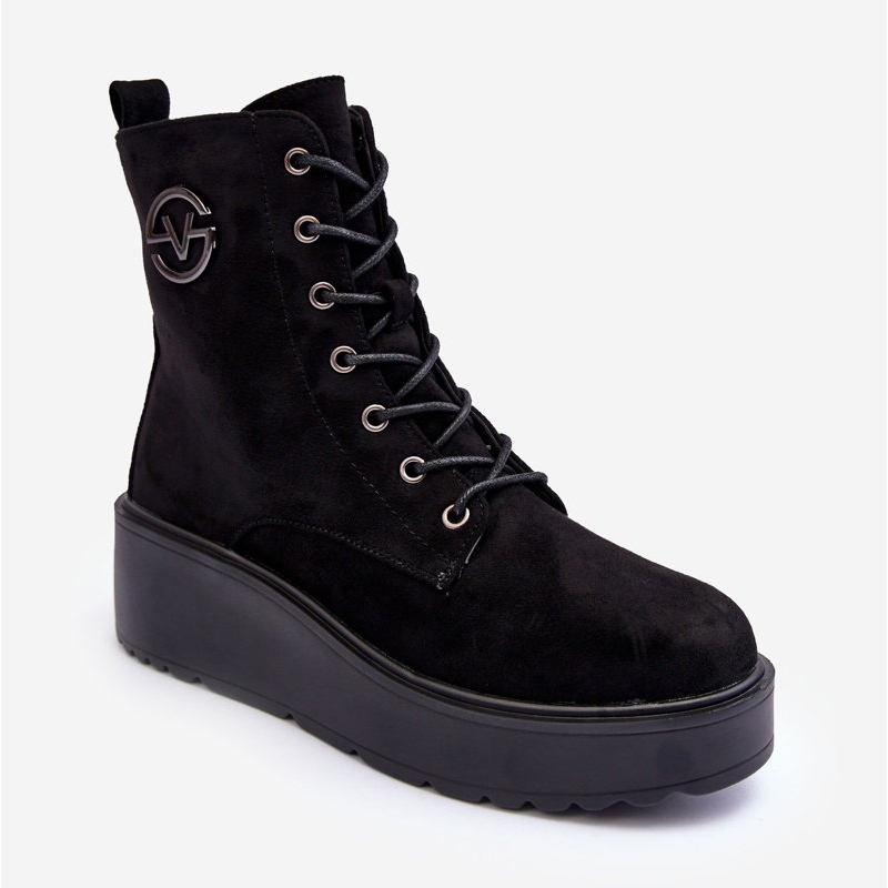 Vinceza Vinceza Semišové Pracovní kotníkové Boty Na Masivní Platformě Klín Black Lavica černá