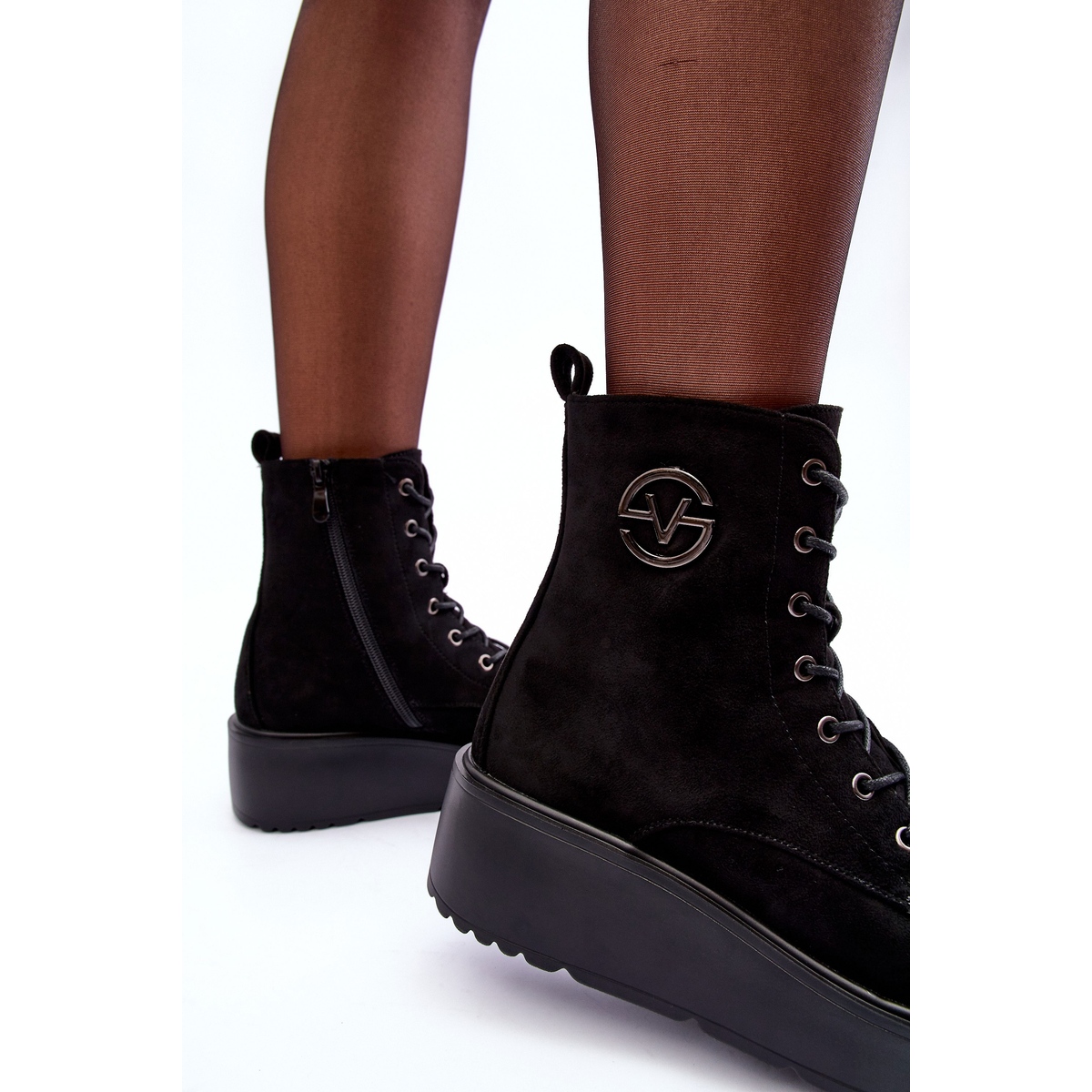 - Modelka: Semišové Pracovní Boty Na Masivní Platformě