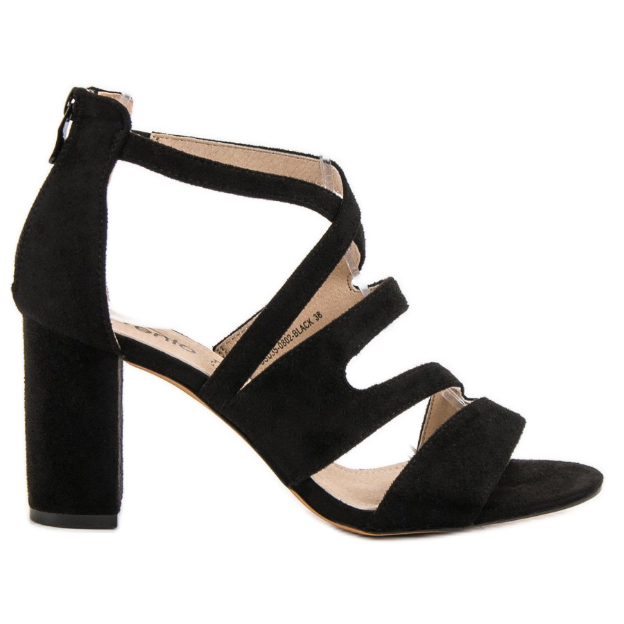 Semišové sandály na vysokém podpatku Evento v černé barvě jsou perfektní volbou pro ženy, které hledají elegantní a pohodlnou obuv pro zvláštní příležitosti. Tyto klasické sandály vyrobené z vysoce kvalitního umělého semiše jistě zaujmou svým jedinečným stylem.