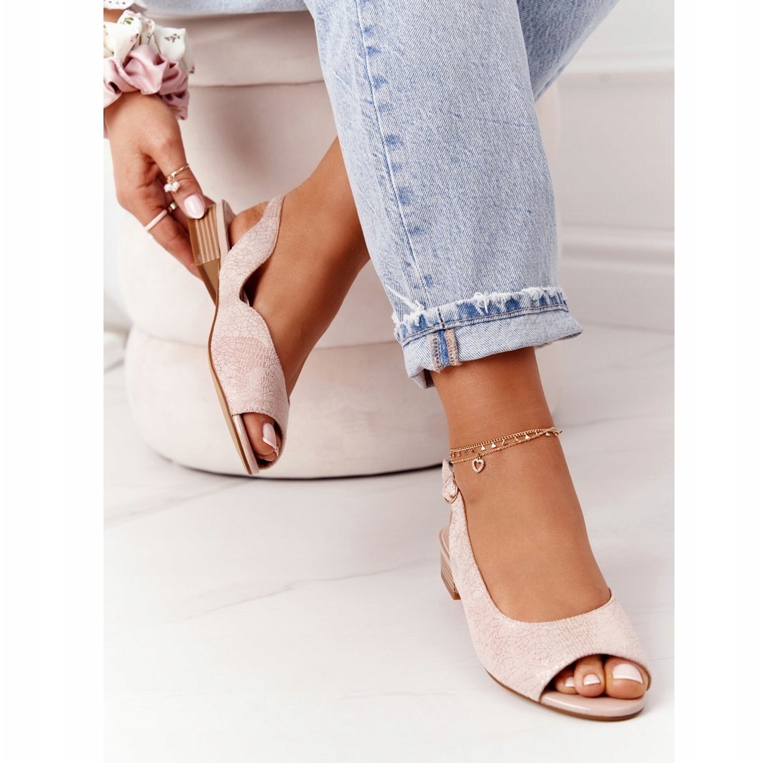 Tyto sandály se vyznačují bezšpičkou a zapínáním na přezku, díky čemuž se snadno nazouvají a přizpůsobují noze. Pudrově růžová barva v kombinaci se zlatými akcenty se skvěle hodí k mnoha stylům – od ležérních až po formálnější.