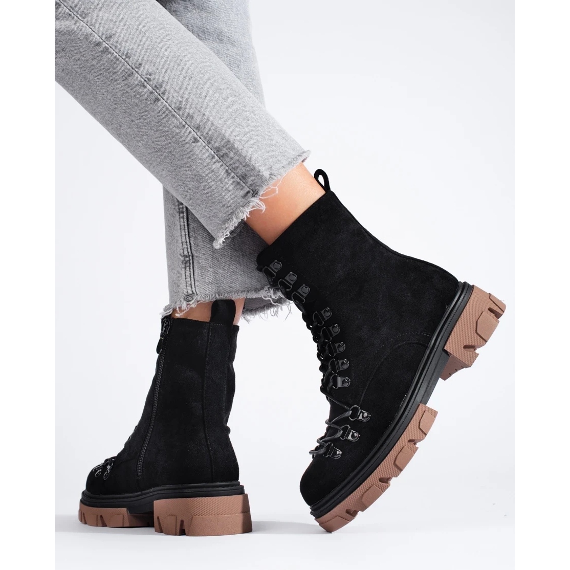 Stylové a pohodlné ženské pracovníky Vinceza v černém, semišovém povrchu. Ideální pro každodenní, příležitostné stylizace pro podzim, zimu a jaro - kombinují módní vzhled s praktickým oteplováním a jistě nohou.