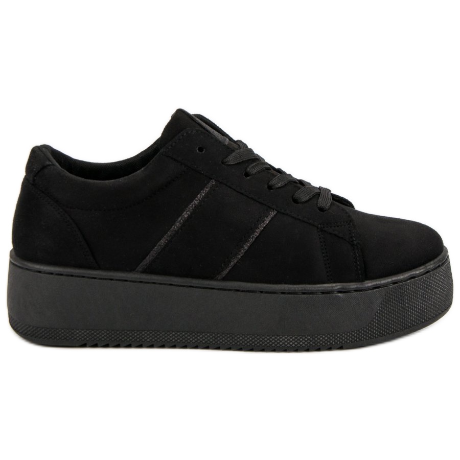 Představujeme černé semišové sportovní boty, které se staly nutností v šatníku každé ženy. Tyto stylové tenisky vyrobené z vysoce kvalitního umělého semiše spojují eleganci s funkčností. Jejich působivě vysoká platforma 4,5 cm nejen dodává charakter, ale také zajišťuje pohodlí při nošení.