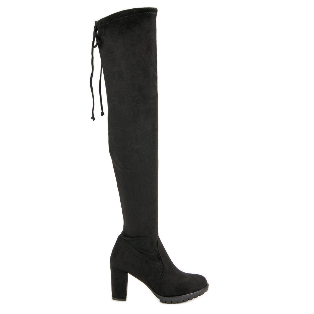 Podrobnosti: SDS Semišové stehenní boty na platformě černý