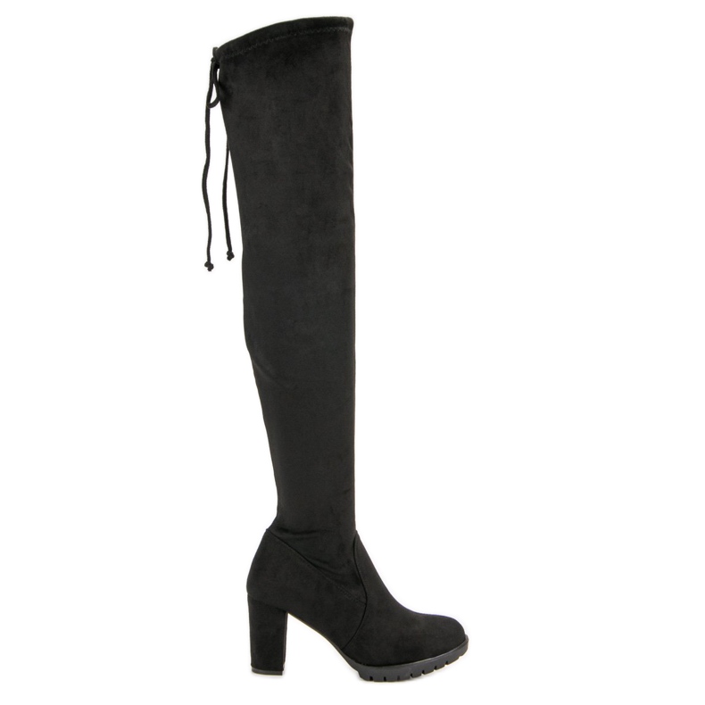 SDS Semišové stehenní boty na platformě černý