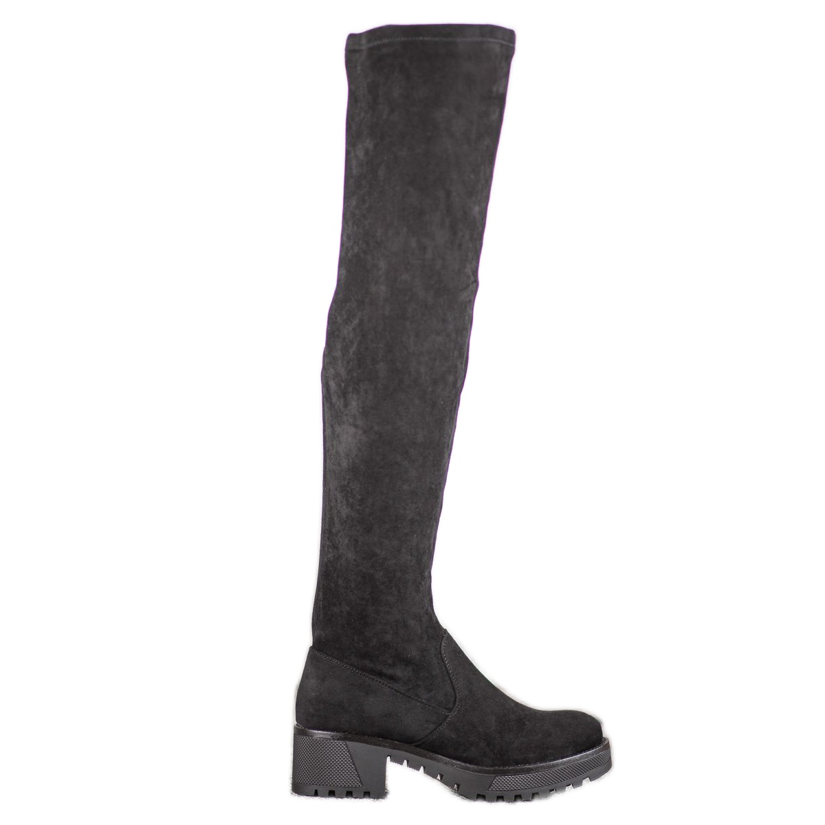 Podrobnosti: SDS Semišové stehenní boty na platformě černý