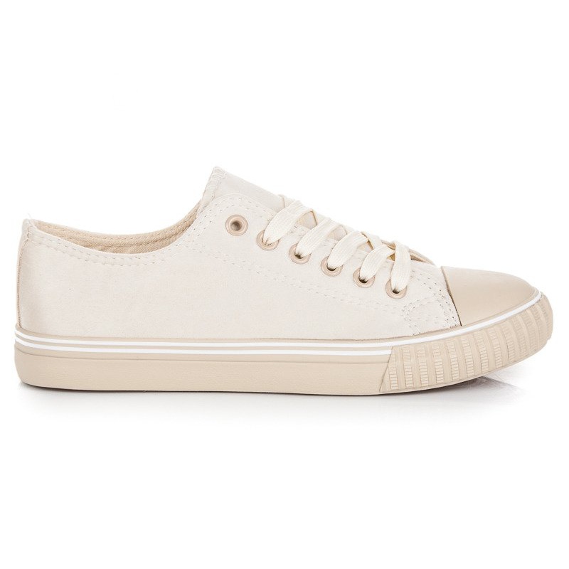 Tenisky mají plochou podrážku a zavazují se klasickými béžovými tkaničkami, které harmonicky splývají s celkem. Jejich monochromatický povrch umožňuje jejich snadné sladění s různými styly – od každodenních až po elegantnější. Díky kulatému nosu jsou lehké a díky nízké výšce jsou extrémně pohodlné, ideální na dlouhé procházky nebo setkání s přáteli.