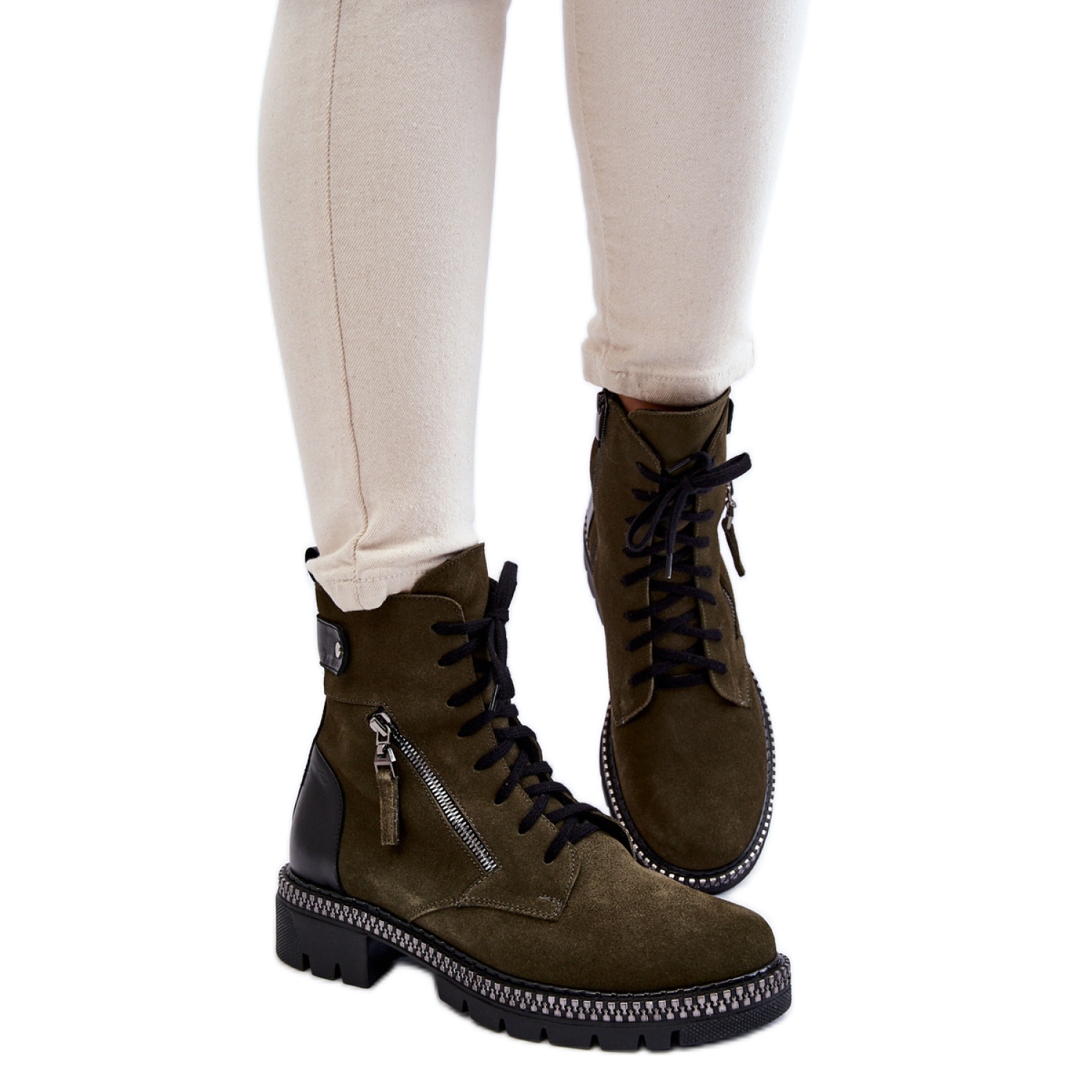 Laura Messi Semišové zateplené kotníkové boty Laura Messi Green zelená
